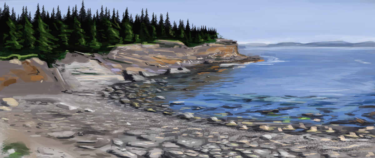 This is from a photo my mother took on her vacation. I think it's Nova Scotia. It was a good study of rocks and water.